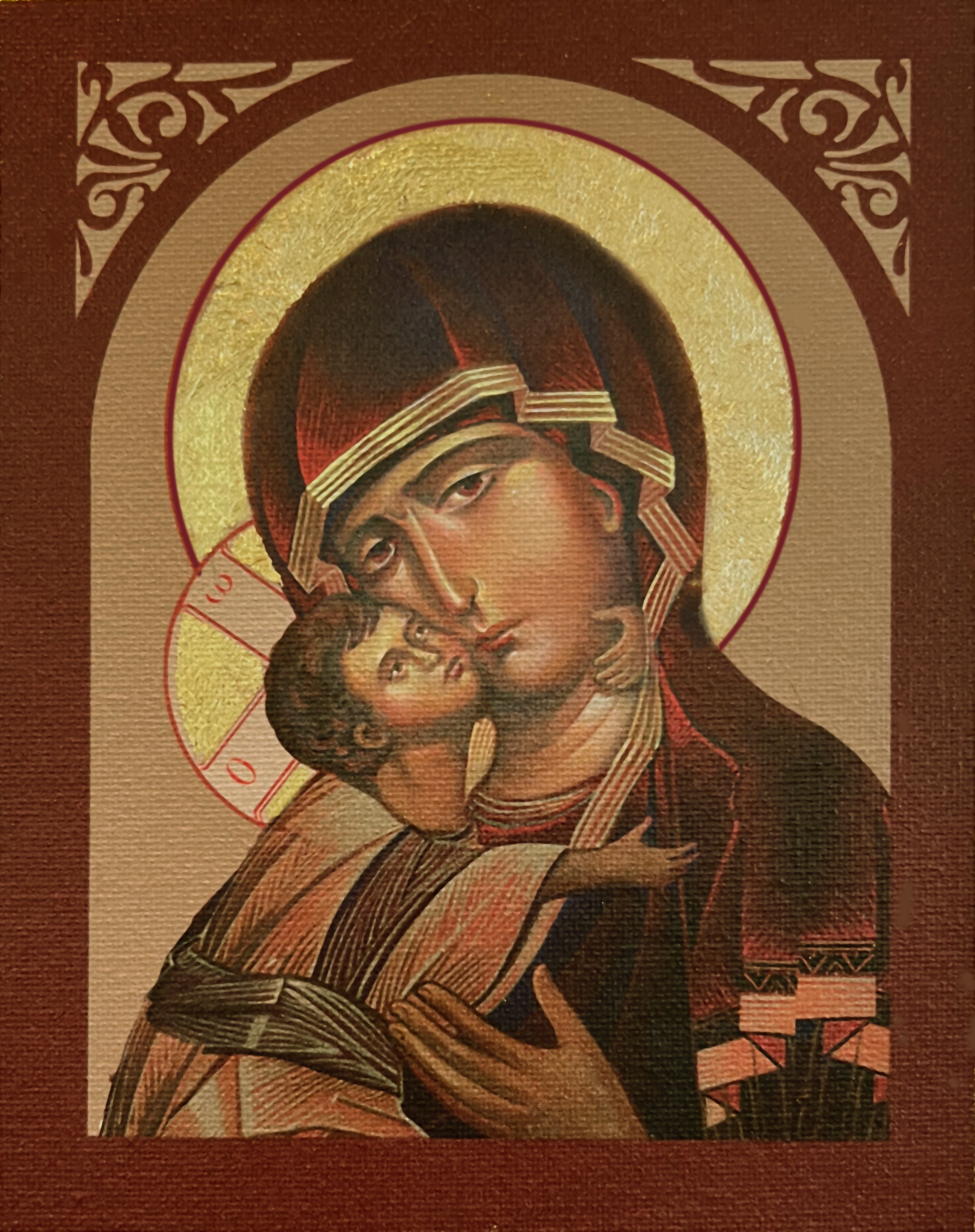 3. An original hand painted byzantine icon carved on a hand carved wooden panel with archival media and gold leaf. This has the artist's benchmark initials and signature on the back.