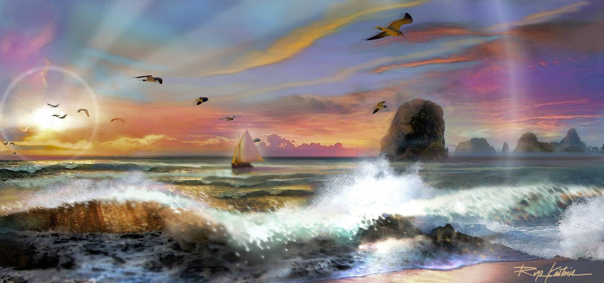 2. Mixed Media Canvas Editions: art printed on 16 x 20 canvas, and hand embellished with brilliant colors and textures. Each special edition signed and authenticated by Kastaris studio. White space varies based on image composition.