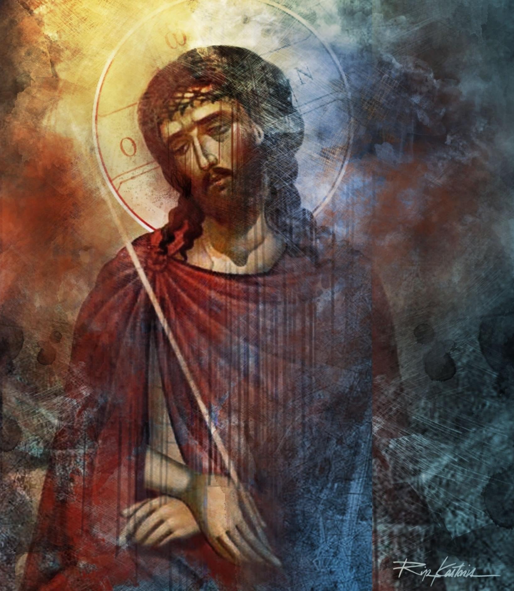 3. An original hand painted byzantine icon carved on a hand carved wooden panel with archival media and gold leaf. This has the artist's benchmark initials and signature on the back.